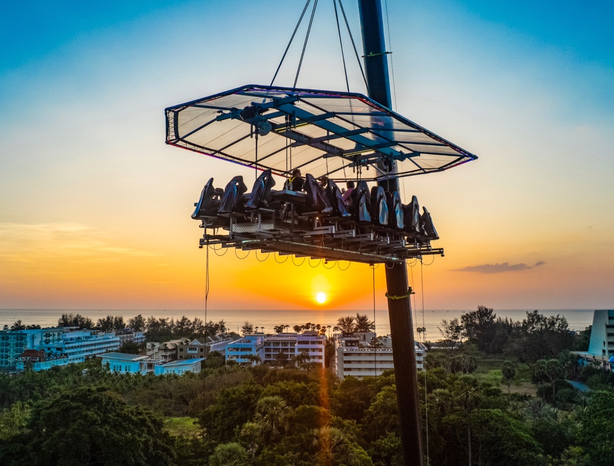 Our Sunset Dinner in the Sky is the highlight of our offerings, providing a perfect view of Phuket’s stunning sunset as you dine 50 meters above the ground. Savor a gourmet three-course meal crafted by our Michelin-trained chef, making this a truly memorable experience.